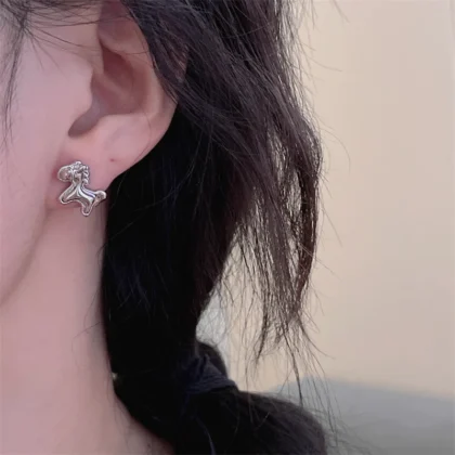 New Metallic Cartoon Animal Colt Horse Statement Stud Earrings for Women Girl Gold Silver Colors Alloy Earring Jewelry