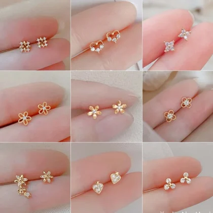 Tibetan Silver Mini Crystal Butterfly Sweet Stud Earrings for Women Flower Helix Cartilage Tragus Lobe Teen Ear Piercing Jewelry