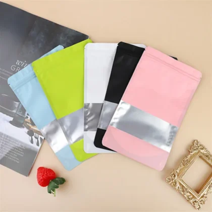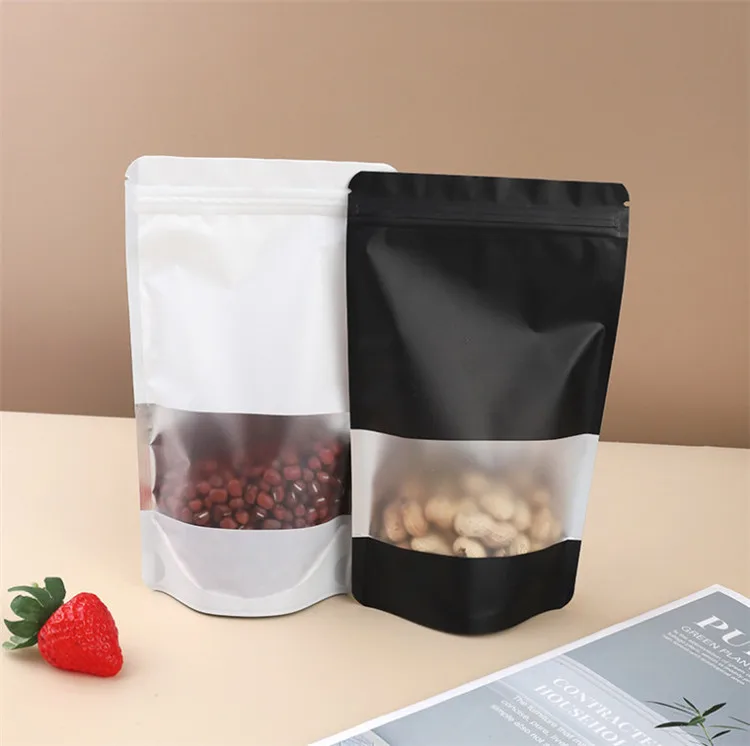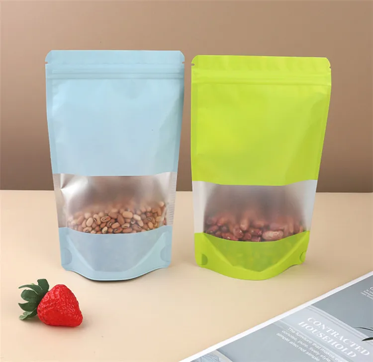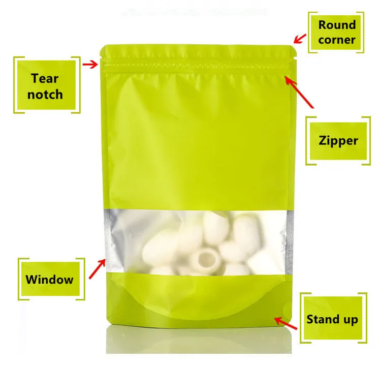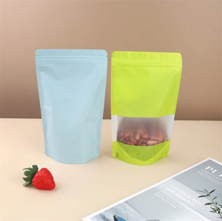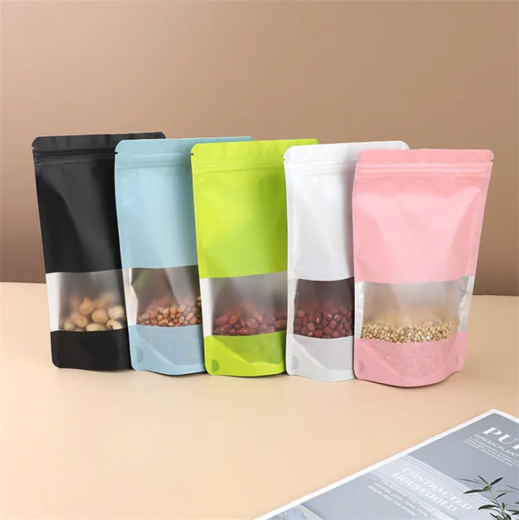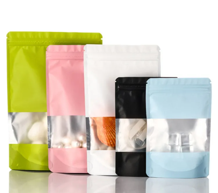 100pcs Stand Up Aluminum Foil Window Zip Lock Bag Resealable Party Wedding Xmas Festival Snack Popcorn Gifts Packaging Pouches