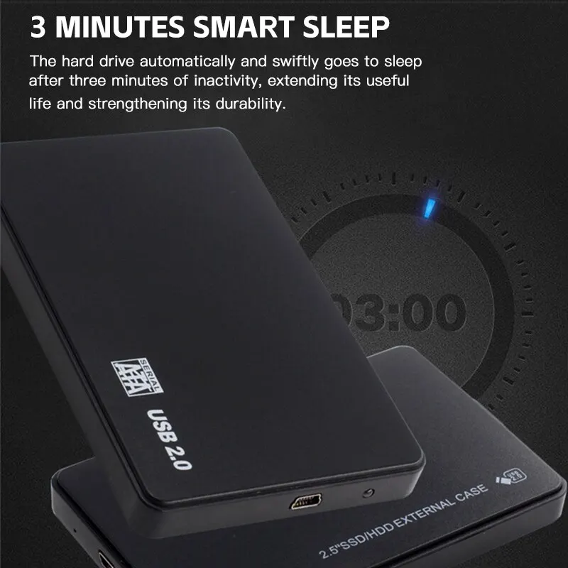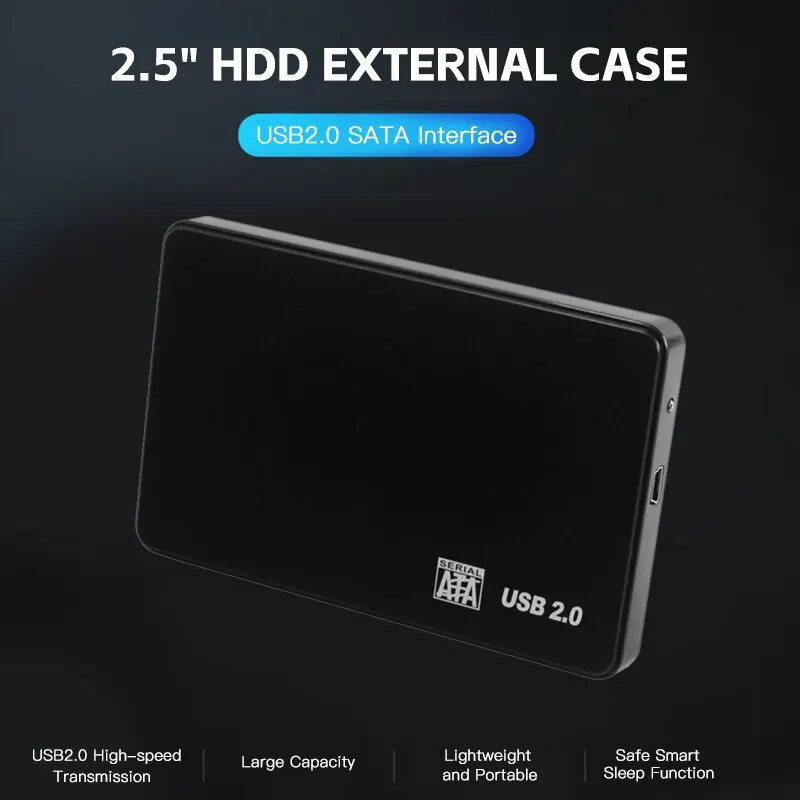 USB 2.0 HDD External Hard Drive Case 2.5 Inch Plastic SATA Enclosure SSD High Speed Transmission Support Window Mac Android